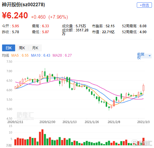 格隆汇3月3日丨神开股份(002278.SZ)股价高位震荡,现报6.24元创逾一个月新高,涨幅7.96%,最新总市值22.7亿。公司昨日公告称,拟使用自有资金以集中竞价交易的方式回购公司股份。回购股份的数量不低于818.7967万股(占公司总股本比例2.25%)且不超过1637.5934万股(占公司总股本比例4.50%),回购价格不超过8.60元/股。
