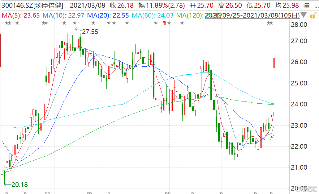 业绩亮眼 汤臣倍健(300146.SZ)大涨超13%
