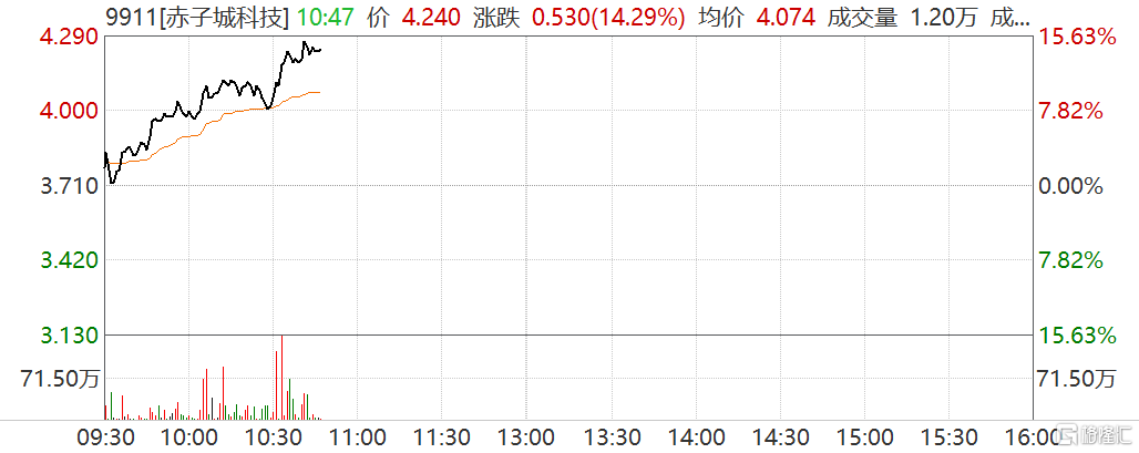 赤子城科技(9911.HK)拉升涨超15% YoHo登海湾六国社交畅销榜TOP10