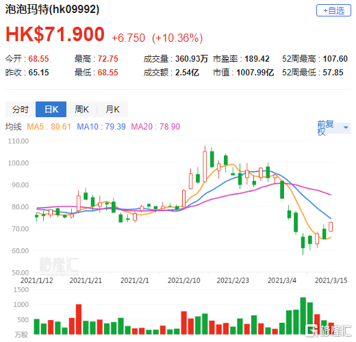港股异动 | 泡泡玛特(9992.HK)涨超10% 获调入沪港通下港股通名单