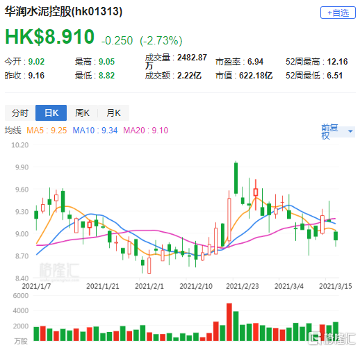 野村:重申华润水泥(1313.HK)买入评级 目标价14港元