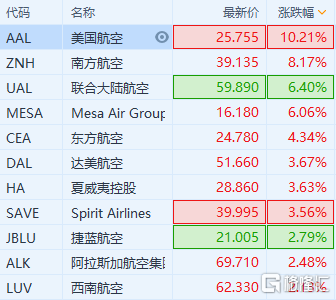 美股航空股扩大涨幅 机场旅客数回升至去年3月以来最高水平