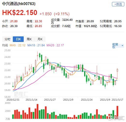 富瑞:将中兴通讯(0763.HK)上调至持有评级 目标价升至20.66港元