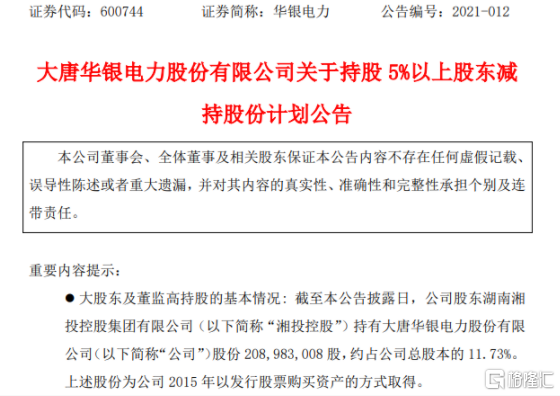 而在涨势不减之下,华银电力的第三大股东坐不住了,着手减持套现。