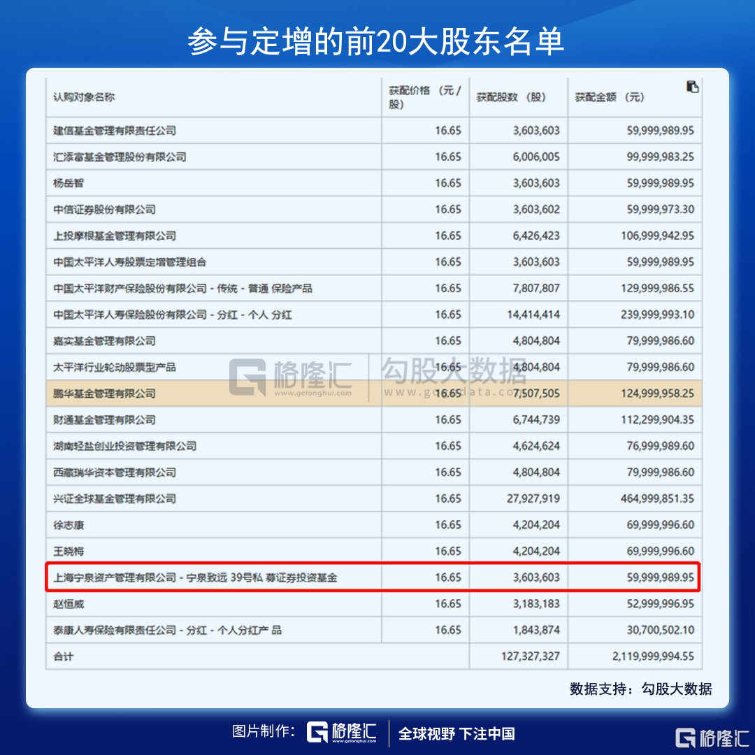 3月16日,宁泉资产参与定增的天下秀解禁1.27亿股,占总股本比例的7.04%。其中,宁泉致远39号私募证券投资基金获配360.4万股,成本约为6000万元,而按照16.65元/股的获配价格来算,截至今日收盘,浮亏超过40%。