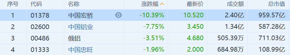 格隆汇3月23日丨铝业股重挫,港股市场中国宏桥跌超10%,中国铝业跌近8%;A股市场闽发铝业、焦作万方和云铝股份均躺在跌停板。