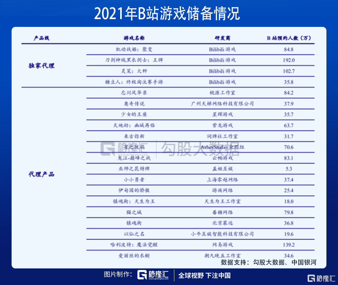 独代游戏包括《Fate/GrandOrder》《公主连结Re:Dive》等,其中《FGO》是二次元游戏代表,是B站游戏业务营收的重要来源,在上线的5年时间内均保持稳定流水。