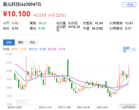 A股异动 | 新元科技(300472.SZ)涨超5% 一季度净利同比预增170.81%-229.68%