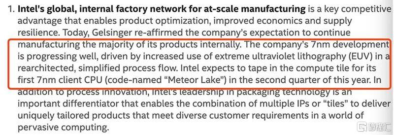 “英特尔是唯一一家兼具深度和广度的软件、芯片、平台、封装和工艺的公司,是需要大规模芯片制造的客户推出下一代创新产品时可以依赖的平台。”基尔辛格说,受极紫外光刻机(EUV)使用增加和简化工艺流程带动,公司7nm工艺制程发展势头良好,预计今年二季度将公布更多有关英特尔首款7nm CPU“Meteor Lake”的消息。