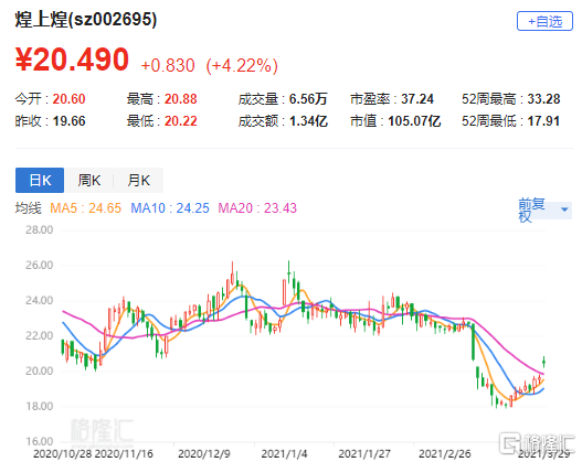 A股异动 | 煌上煌(002695.SZ)涨超4% 2020年纯利同比增长28.04%