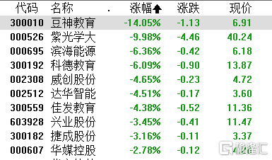 市场传闻致中概在线教育股在上周五暴跌,拖累今日在线教育股普跌,其中,豆神教育大跌超14%,科德教育、佳发教育等多股跟跌。