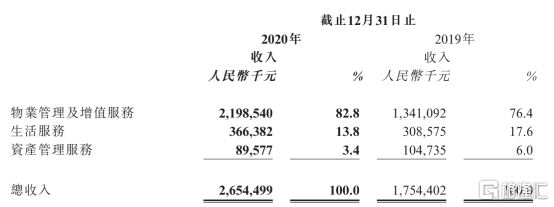 图片:2020年建业新生活物业管理及增值服务收入按细分项目划分