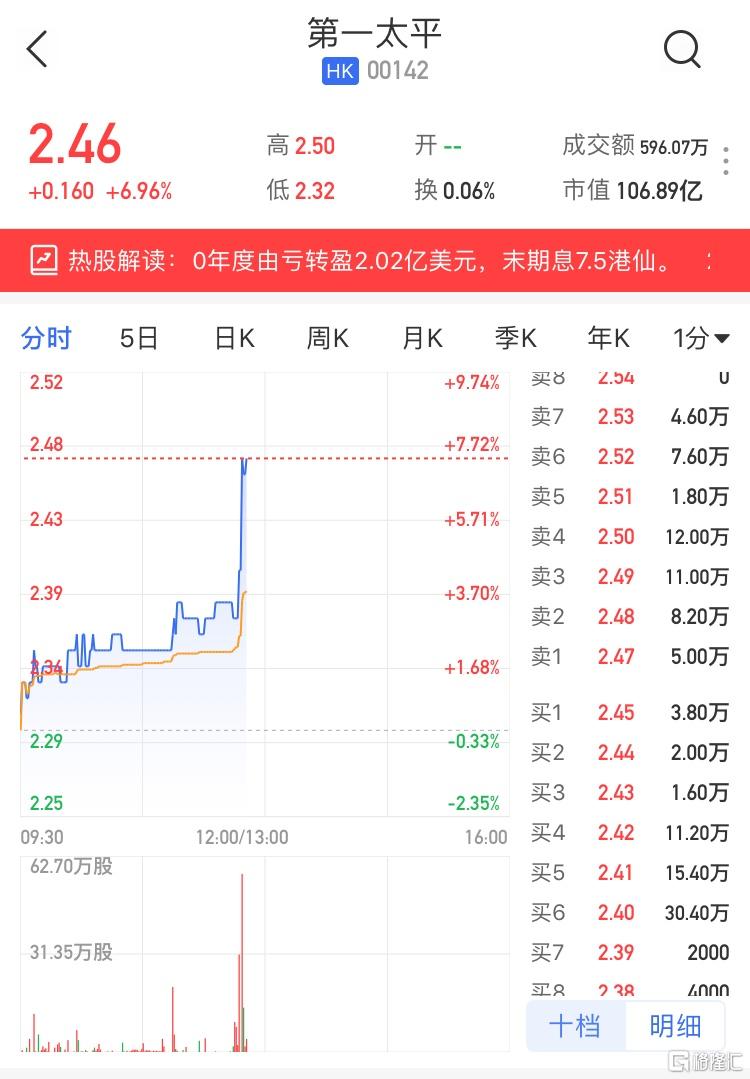 港股异动 | 第一太平(0142.HK)直线拉升涨约7% 2020年度业绩由亏转盈2.02亿美元
