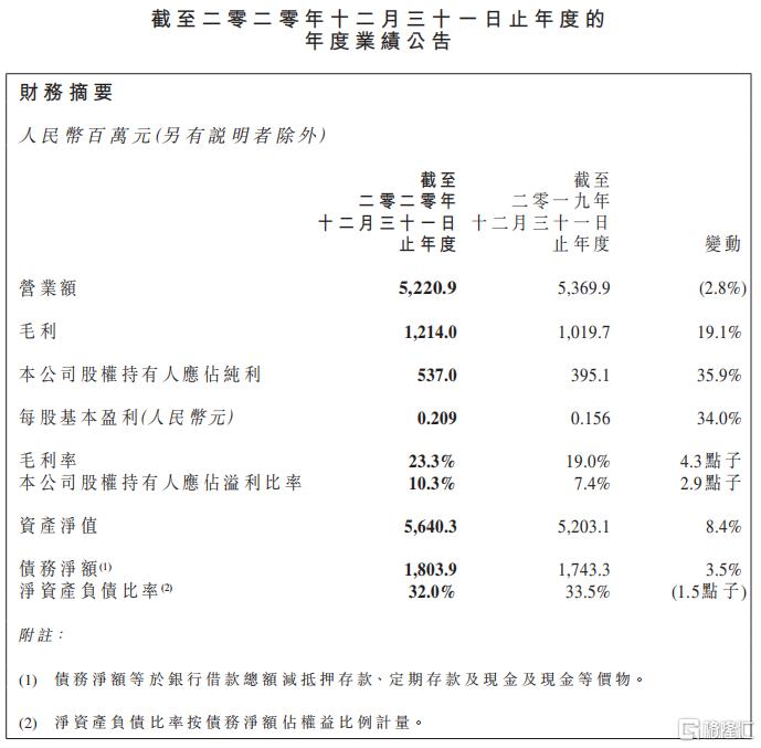 与此同时,2020年归母净利润达5.37亿元,同比增长35.9%,创下上市以来新高。除上述提到的产品结构持续升级之外,还有以下主要原因:
