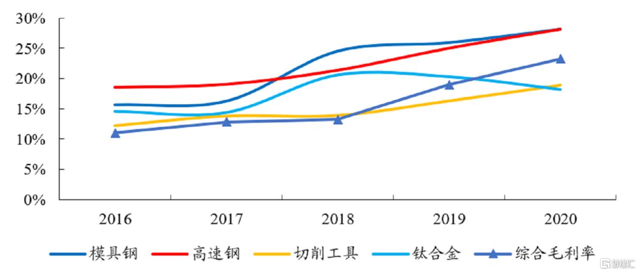 同时,由于原材料采购成本下降以及客户结构优化带来售价提升,导致模具钢毛利率由2019年的25.9%上升了2个百分点至28.1%。