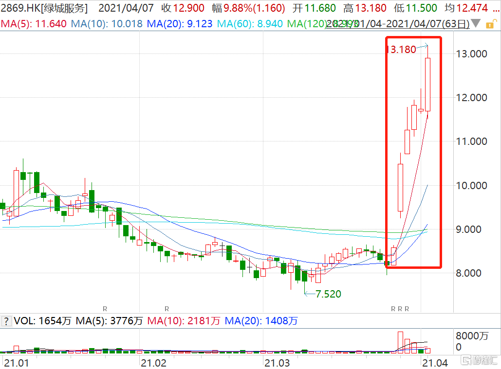 绿城服务(2869.HK)再创历史新高 近5日累涨超60%