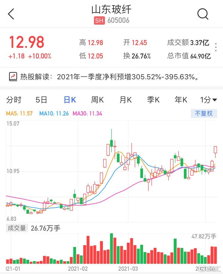 A股异动 | 山东玻纤(605006.SH)涨停 一季度净利同比预增305.52%-395.63%