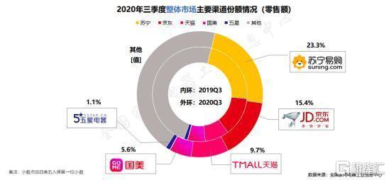 另外,截至2020年第三季度,国美在国内家电零售市场的份额为5.6%。虽然依旧占据前列,但回首以前独占鳌头的景况,已经今非昔比。