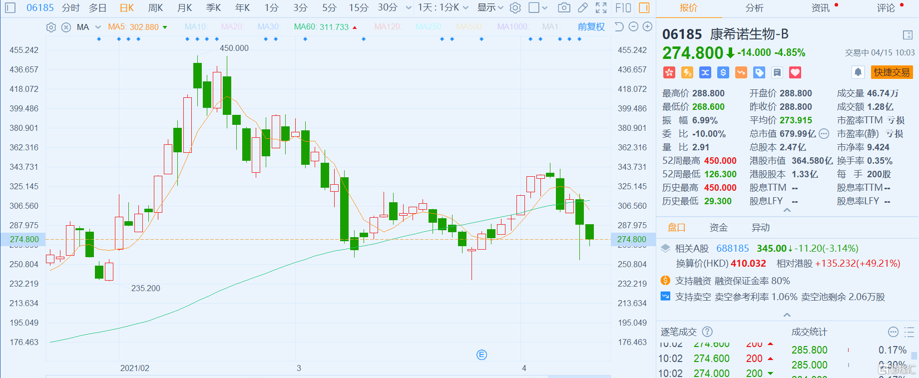 港股异动丨康希诺生物(6185.HK)仍未止跌 即便澄清称百万人测试中未见血栓报告