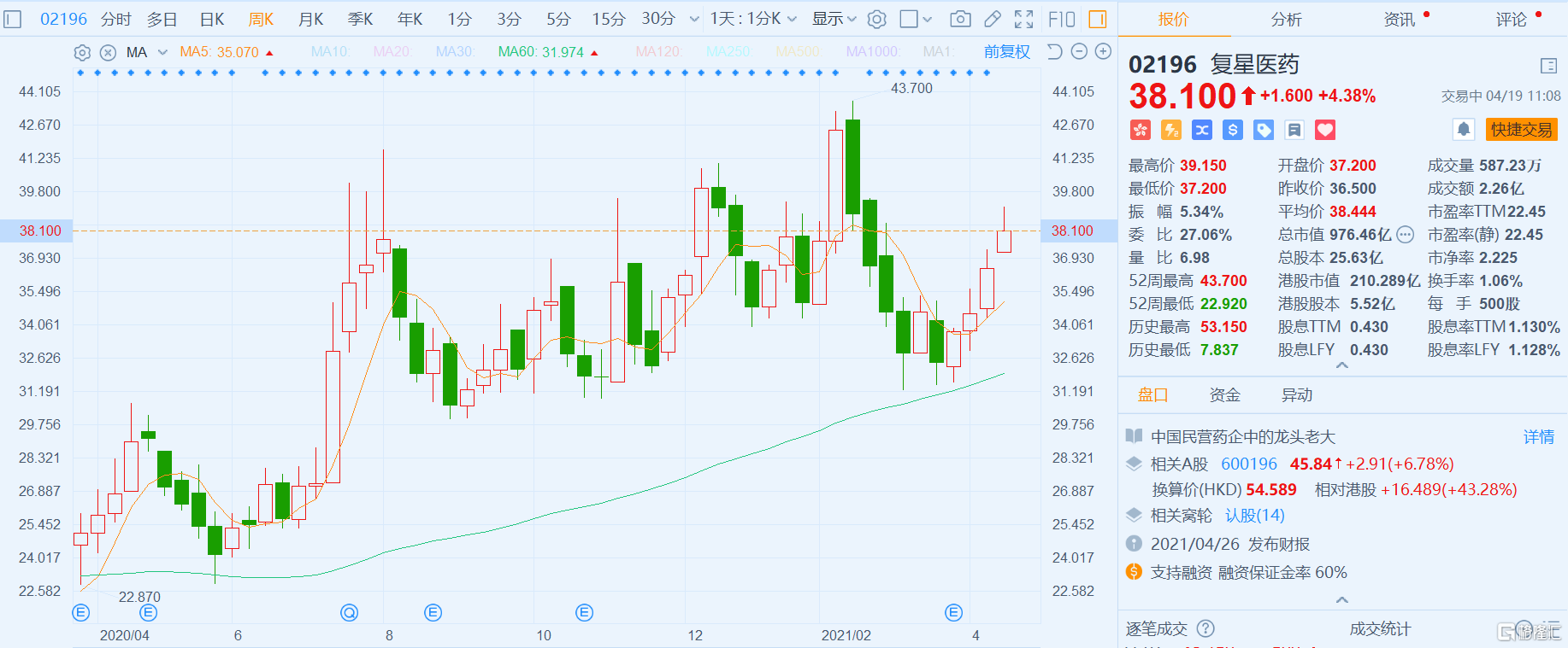 复星医药AH齐涨 外媒称中国计划于7月批准德国BioNTech研发的新冠疫苗在国内使用