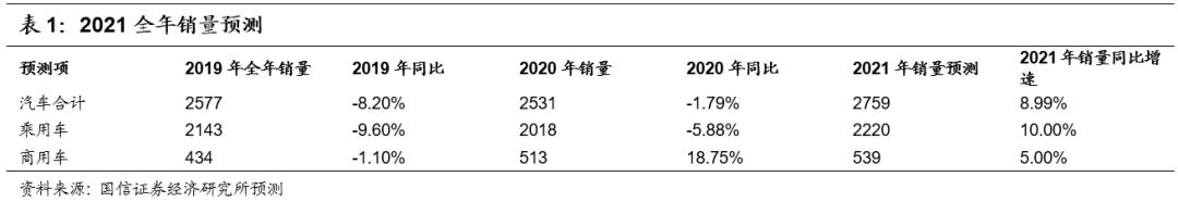 2021全年销量展望:有望持续回升,预计全年乘用车同比增长10%