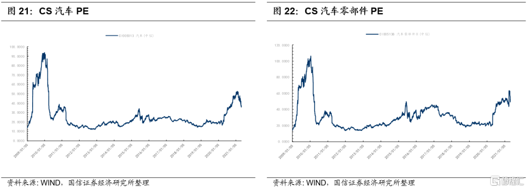 汽车汽配板块估值从19年初逐渐回升,本月汽车板块有所回落,汽车零部件板块有所回升。截至2021年4月28日,CS汽车PE值为38倍,估值水平较年初有所下降;CS汽车零部件PE值为53倍,估值水平较年初有所回升。国内汽车销量18年7月以来开始下滑并呈现加速下滑趋势,而国内汽车汽配板块估值自18年年初即开始下滑,2018年底至今估值基本稳定并逐渐回升,2020年初至今CS汽车零部件PE开始逐步回升(一定程度上电动智能产业链拉动效应)。