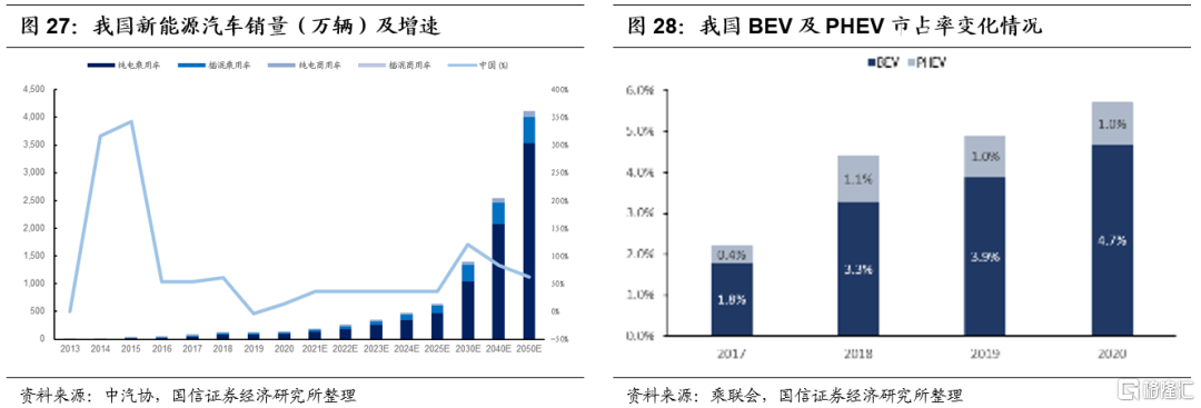 2)结构方面,纯电车型占新能源乘用车占比有望持续维持在80%水平。纯电车型占总体乘用车比重从2017年的1.8%增长到2020年的4.7%;插混维持在1%左右。