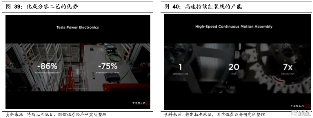 其一,特斯拉通过干电极工艺、化成分容工艺的创新提升产线效率,降低投资额,降本18%。