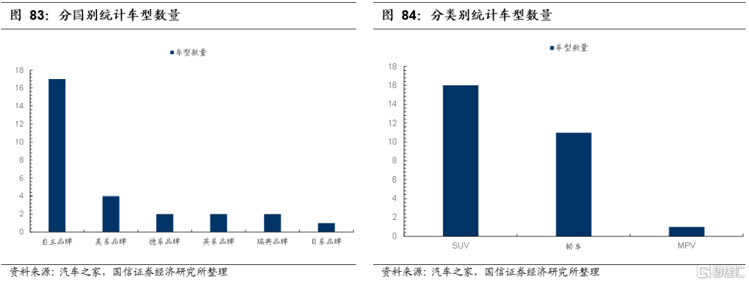 中国汽车人均保有量低于世界平均水平,汽车行业仍有较大增长空间;近年来SUV销量上逐渐缩小了与轿车的差距,市占率达到41.45%,未来将大概率超过轿车市占率。经济发达的东部地区目前主要为替换需求;经济落后的中西部地区主要为首次购车需求,未来将成为中国汽车销量的主要增长点。中西部地区对自主品牌销量贡献率高达77%,叠加其道路情况较差,SUV以高通过性等特点更能吸引当地消费者,自主品牌SUV将继续保持增长态势。