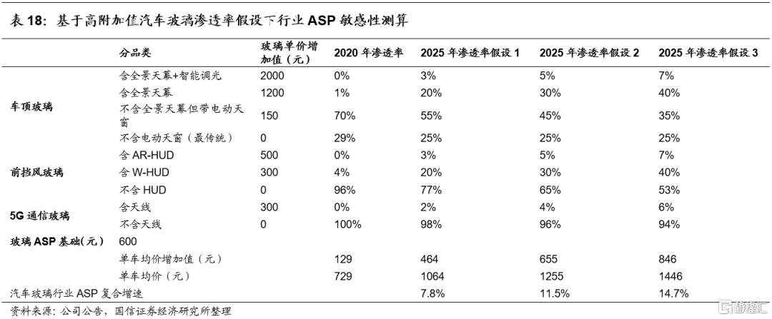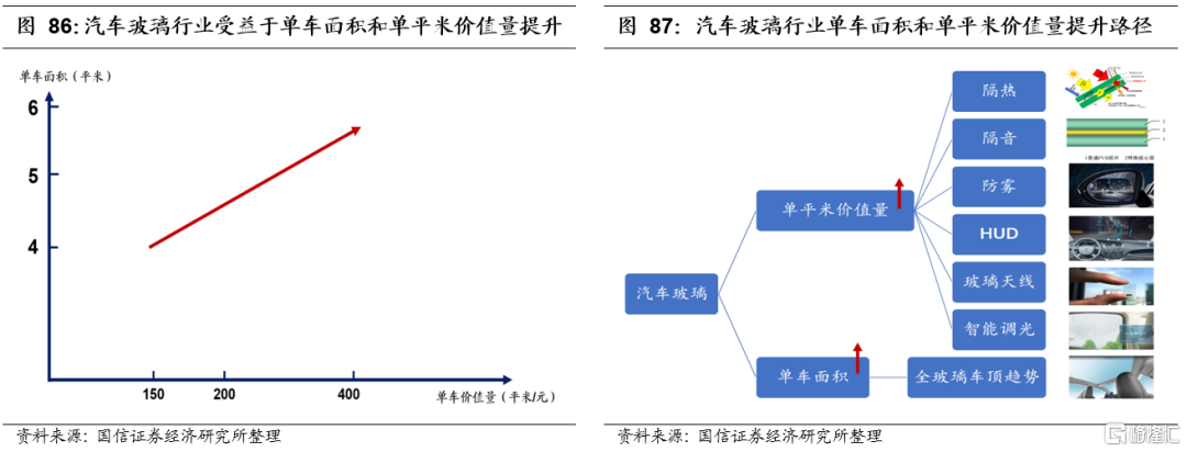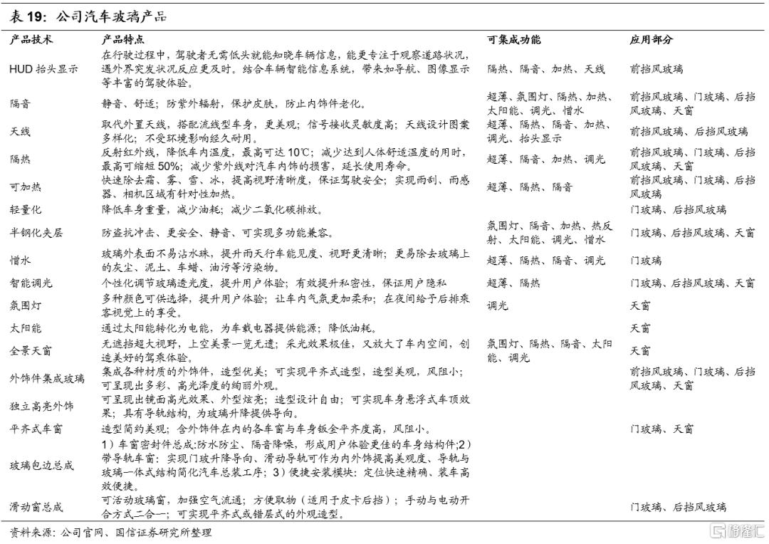 专注于一片玻璃的价值量延伸。智能化、消费升级背景下汽车玻璃单车使用量(天窗+前档)和单面积价格(HUD、智能调光、隔热、隔音、除霜、Low-E等)提升。目前福耀拥有安全型、低碳型、集成型三大类玻璃产品,新产品的国内外客户扩展情况乐观。我们认为,随着天窗玻璃渗透率提升、HUD等高附加值产品提高汽车玻璃单价,未来公司产品有望维持价量齐升的趋势。