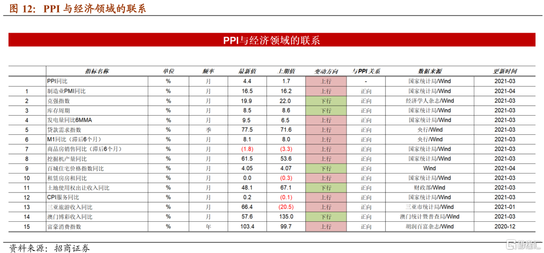 PPI 是需求在价格层面上的映射,其不仅反映价格涨跌,更反映需求强弱,与经济多个领域有着千丝万缕的联系。历史上,每一轮PPI上涨往往意味着经济复苏、建筑业兴旺与随之而来的“财富效应”。