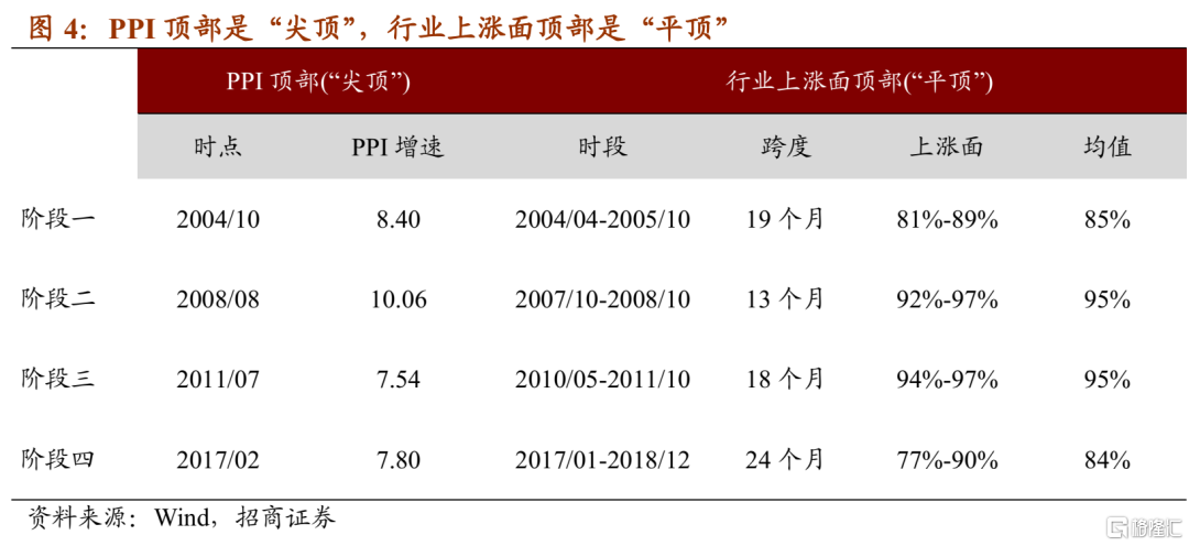 以2020年5月为本轮PPI增速上行的起点,至今为止已经上行一年时间。此轮价格扩散进行到什么程度了?中上游涨价能继续向下游传导吗?