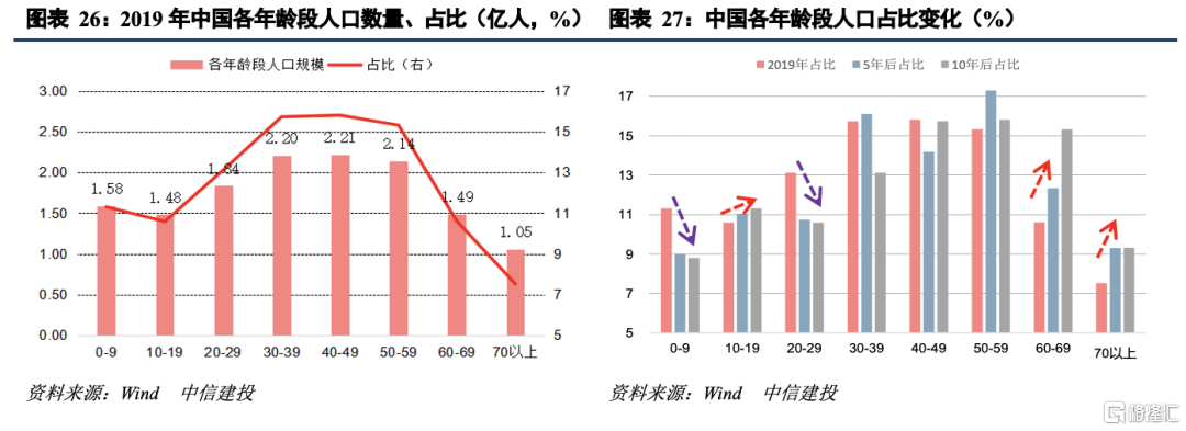 根据中国人口与发展研究中心研究,“十四五”时期我国人口形势将加速演变,少子化加速、劳动力下降加速、老龄化加速,人口总量将迎拐点,这均将对未来我国的消费总量及结构产生重大影响。主要体现为少子化带动母婴、儿童、教育等消费增长受限,劳动力趋少带动房、车、家电等大宗消费增长受限,老龄化加速带动医疗保健消费高增长,人口总量迎拐点使得总消费增速进一步放缓等。