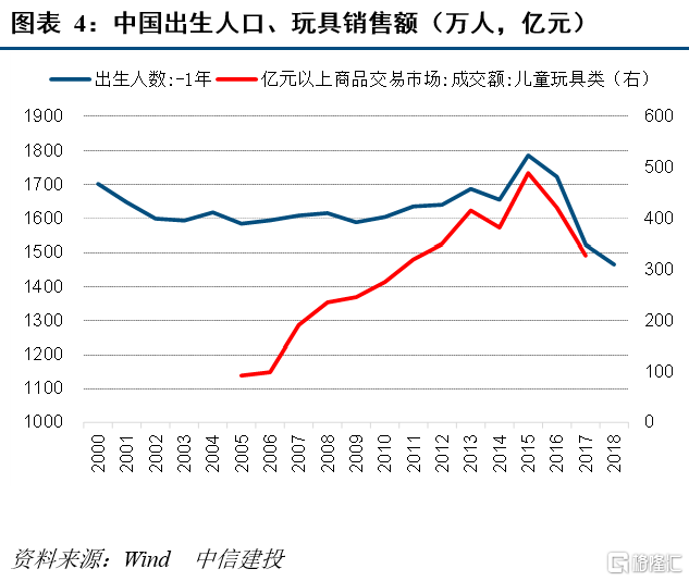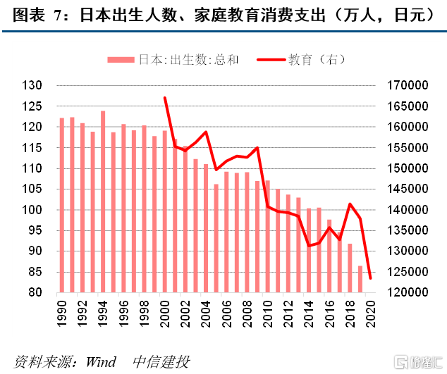 少子化加速,母婴、儿童、教育等消费增长受限。如以玩具代表母婴、儿童类相关消费,从我国出生人口与玩具市场成交额来看,二者正相关性较高,2015年以前随出生人口数量回升,玩具市场成交额亦回升,2015年后出生人口回落,玩具市场成交额亦回落。再以日本为例,1973年日本迎来出生人口拐点,随后其幼儿园学生人数、小学学生人数相继迎来拐点,此后日本出生人口持续下滑,2000-2020年日本家庭人均消费支出下降1.8%,其中教育消费支出大幅下降17.1%。