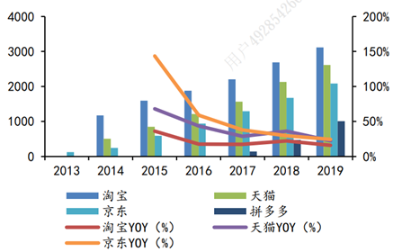 2019年,阿里与京东GMV增速已下滑20%左右,年度活跃用户增速也已换挡至10%~20%。拼多多异军突起,经历了前期的迅猛增长,但在2020年GMV整体增速放缓,2020第三季度年度活跃买家增速仅20%。随着国内电商平台之间竞争加剧,如部分电商平台采用二选一策略,导致商户必须做出选择,流量转移,而随之产生的电商件也将深刻影响菜鸟与京东物流的业务格局。