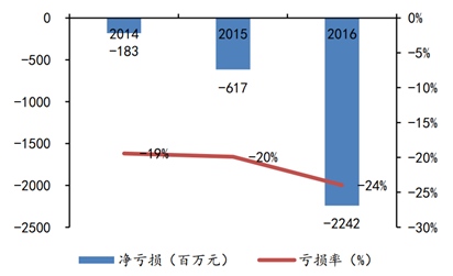 菜鸟社会化收入不断提升,但运营持续亏损。菜鸟网络的阿里支付占比从2014年的83%,降到了2016年的43%,社会化收益占比持续提升。但运营持续亏损,2016年亏损额达到22.4 亿,亏损率达24%。2017年菜鸟旗下全资子公司浙江菜鸟供应链管理公司亏损达13.5亿元,浙江驿栈(运营菜鸟驿站)亏损 2.9亿元。