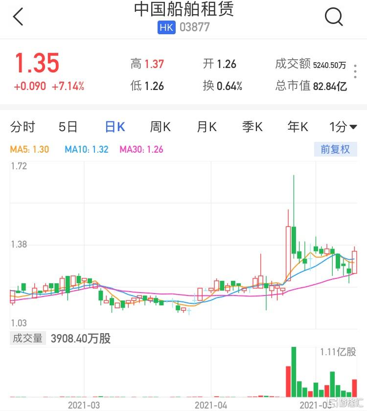 港股异动 | 中国船舶租赁(3877.HK)涨超7% 获纳入MSCI中国小型指数