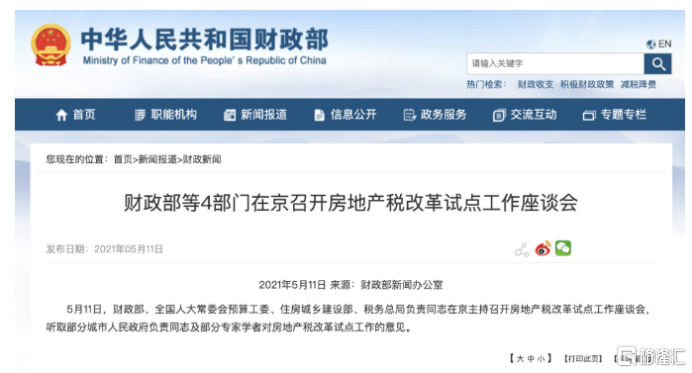 深圳披露深房理最新进展的同一天(5月11日),财政部官网挂出了一则重磅新闻: