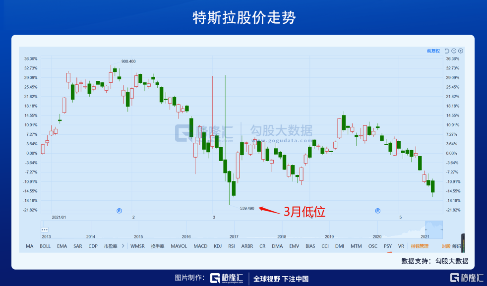 即使特斯拉今年净利润继续获得2倍的增长,但眼下特斯拉的动态PE仍然高达566倍,换言之,仅仅依靠EPS去消化估值,效果有限,加上流动性泛滥不再,反而是收水预期时不时出来敲打一下。
