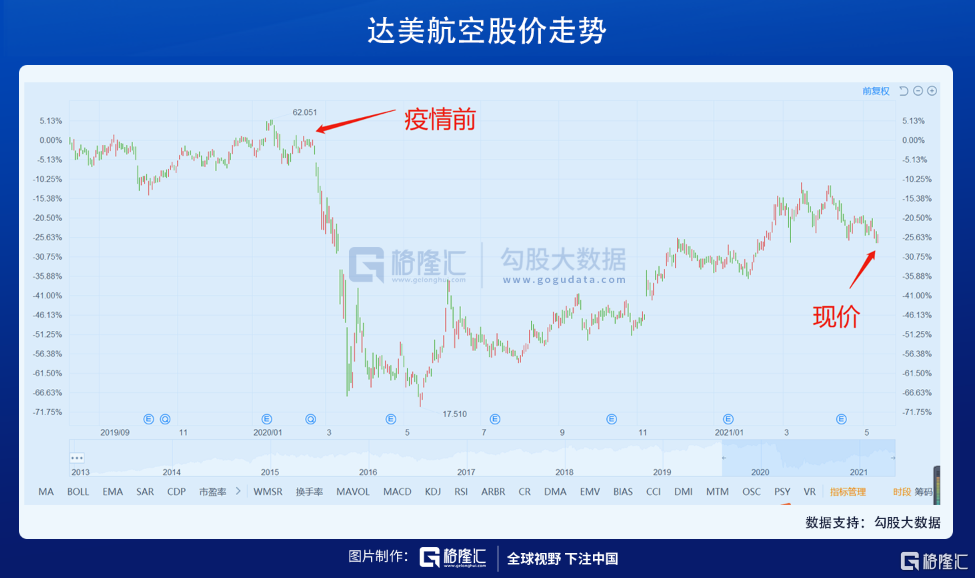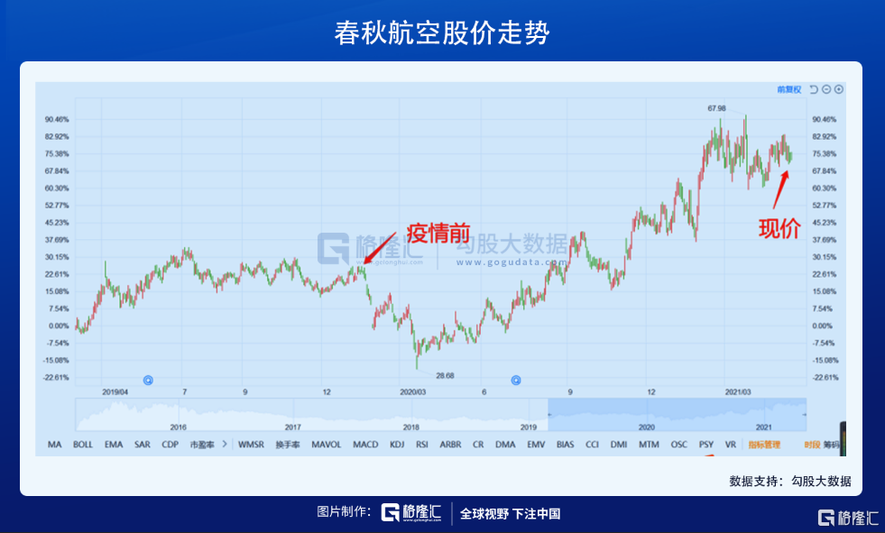 但另一面,和美国一样,廉价航空公司却表现不错,刚过去的五一出游超旺行情,也使得廉价航空在短途旅游航班上,直接受益,春秋航空股价已经超过疫情前水平。