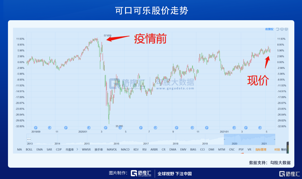 消费股可口可乐,距离疫情前的水平,股价也只有不到10%的空间。