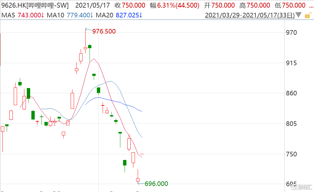 格隆汇5月17日丨哔哩哔哩(9626.HK)今早跳空高开6.31%报750港元,最新市值2883亿港元。上周五哔哩哔哩美股收涨10.72%报96.87美元,折算成港股市场价格为752.45港元/股。公司13日公布业绩显示,Q1营收按年增长68%至39.01亿元人民币,超出公司指导上限2.7%;Non-GAAP每股ADS亏损1.87元,好于预期。公司预计二季度净营收将在人民币42.5亿元至人民币43.5亿元之间。