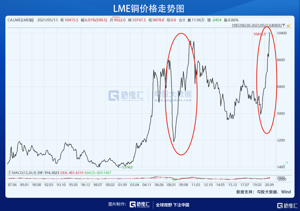 全球大放水叠加经济复苏启动催生出了一个不同寻常的商品牛市,时隔一年,这轮超级行情非但没有回归常态,反而愈演愈烈。2月下旬春节刚过,中信证券喊出铜价12000美元/吨,彼时伦敦铜标价8000多,兜兜转转一度站上10000美元,叹为观止。