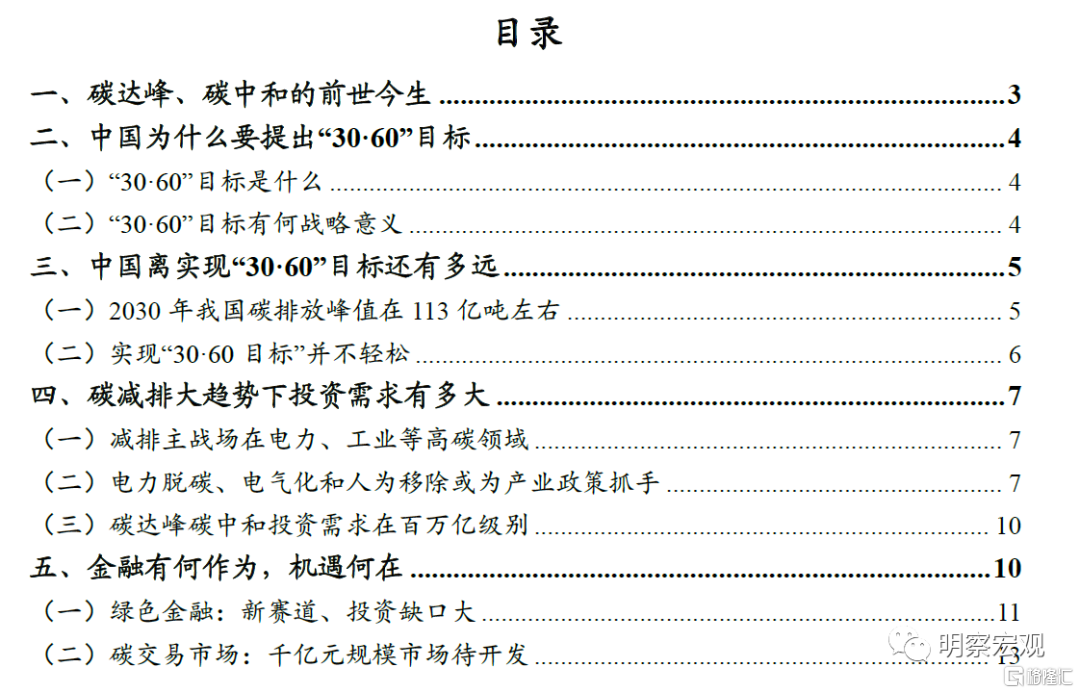 中国为什么要提出“30·60”目标,即2030年碳达峰、2060年实现碳中和?一是应对全球气候变化,构建人类命运共同体。中国2000年以来新增碳排放占全球的62%,是解决全球气候问题的关键,碳减排领域是我国与西方能达成共识的少数几个领域之一,有助于提升我国国际影响力,将国内绿色发展理念延伸至全球。二是摆脱能源“卡脖子”难题,保障资源安全。三是推动生态文明建设,实现高质量可持续发展。