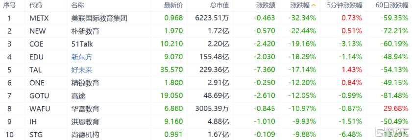 隔夜美股市场上,教育类中概股再遭重挫。