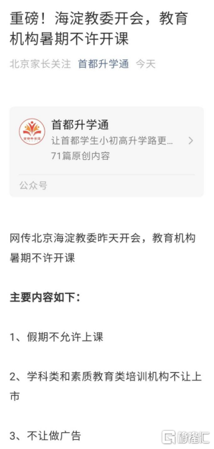 正因如此,针对校外培训、K12教育机构的监管措施,最先在北京落地。