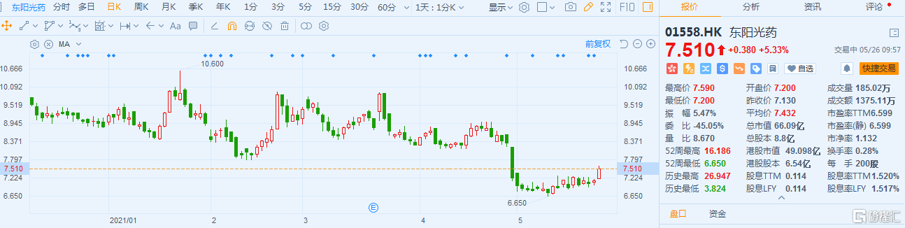 港股异动 | 东阳光药(1558.HK)涨逾5% 多个药品获批上市