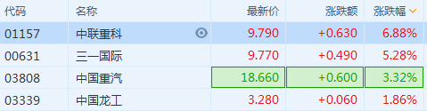 港股异动 | 重型机械股走强 中联重科(1157.HK)涨超7%