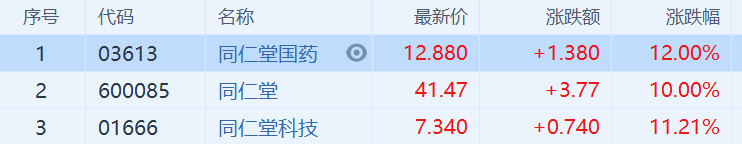同仁堂系全线暴涨 同仁堂集团拟开拓医药电商业务