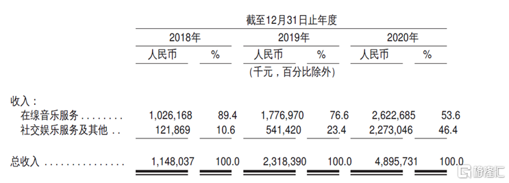 中国在线音乐及娱乐平台庞大及持续增长的用户群体创造出一个繁荣的市场,根据灼识咨询报告,市场规模由2016年的67亿元增至2020年的414亿元,年均复合增长57.9%。